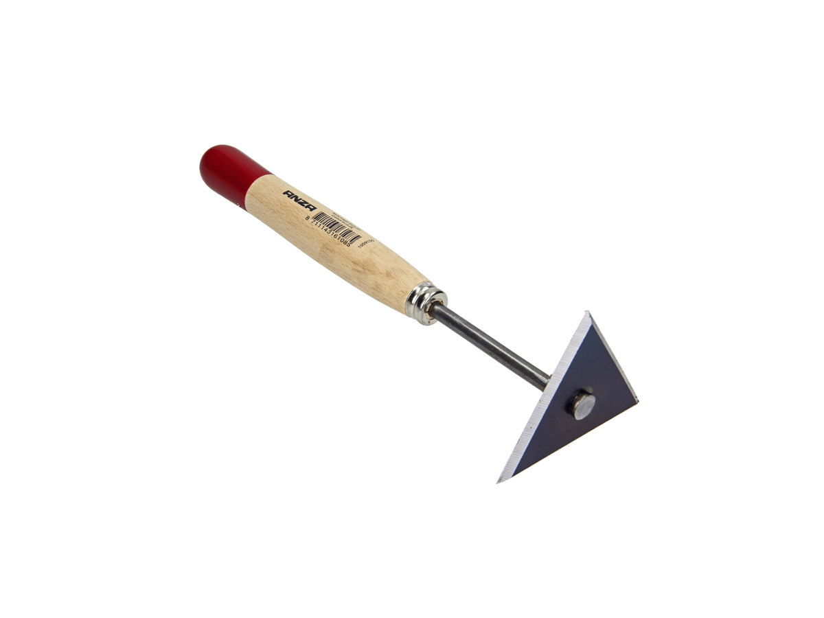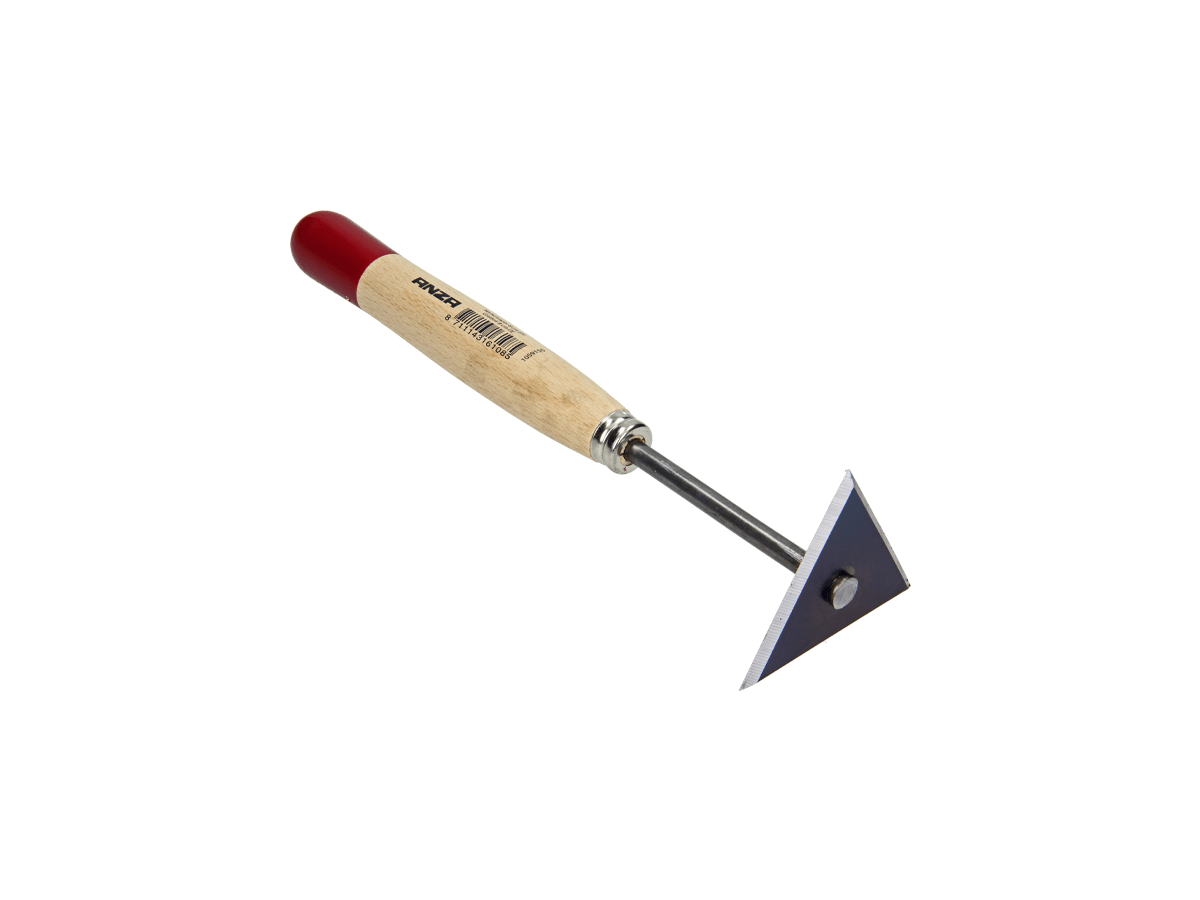 Deze driehoekige verfkrabber van Anza is ontworpen voor precisiewerk bij het afkrabben van oude verf en coatings. Dankzij de speciale vorm bereik je eenvoudig binnenhoeken en smalle plekken zonder het oppervlak te beschadigen. Het houten handvat zorgt voor een comfortabele grip en een natuurlijke werkhouding.