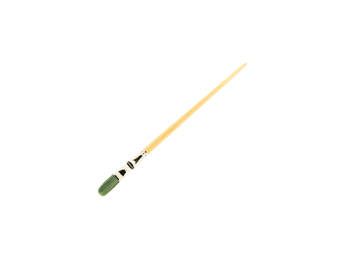 De mix van gemodificeerde polyester vezels biedt een uitstekende verfopname en een gelijkmatige verfafgifte, waardoor het penseel moeiteloos een strak en streeploos resultaat levert. De zachte uiteinden van de vezels met fijne blesjes zorgen voor een vloeiende afwerking. De gelakte houten steel ligt comfortabel in de hand en geeft optimale controle tijdens langdurig gebruik