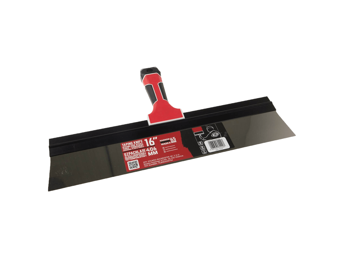 Volgens de aanvullende technische informatie is het blad vervaardigd uit gehard roestvrij staal van 0,5 mm dik, wat zorgt voor een consistente drukverdeling over het hele oppervlak. Het gereedschap is bestand tegen slijtage, chemische middelen en mechanische invloeden, wat het tot een betrouwbare keuze maakt voor professionele schilders en stukadoors.