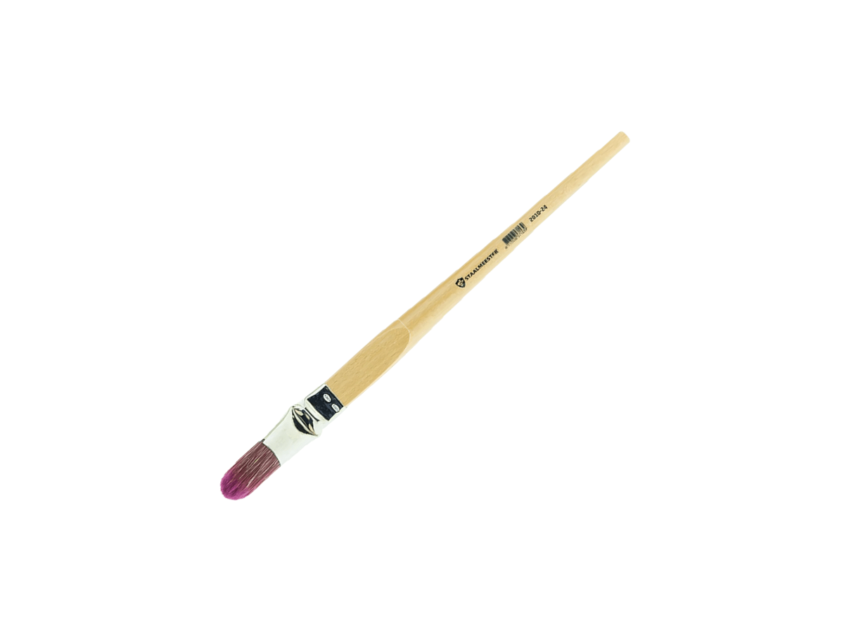 De Staalmeester 2010 gebogen lyon penseel is een hoogwaardige hybride penseel met een soepel verende vezelmix. Dankzij de gebogen vorm werk je nauwkeurig langs randen, profielen en moeilijk bereikbare plekken. Geschikt voor acrylverf, lak en beits.